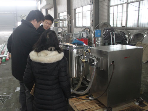 澳大利亞客戶因均質牛奶需要,于2014年在我公司購買一臺高壓均質機。由于不太熟悉均質機的操作,2015年1月28日, 澳大利亞客戶來我工廠現場學習,業務員與技術工程師熱情的對其進行了設備的操作指導。